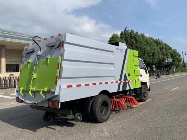 帶掃盤4把,江鈴副發動機;大力馬達;施耐德控件開關;**電磁閥組;免維護自分離式離合器;免維護風機;不銹鋼水箱;不銹鋼垃圾箱;尾部LED箭頭燈;手動泵應急系統;刷臂轉動機構使用高新耐磨工程隔套,免打黃油;精密冷彎無縫液壓油管。